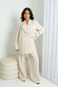 Adoptez un look chic et moderne avec cet ensemble blazer oversize. Le blazer à 1 bouton offre une coupe ample et structurée, tandis que le pantalon semi-ample assure confort et élégance. Parfait pour un style professionnel ou casual sophistiqué, cet ensemble est idéal pour celles qui souhaitent allier style et confort.