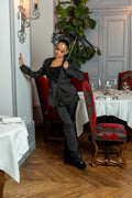Élégant, mystérieux et charismatique, l’Ensemble Nightshade s’inspire directement de l’univers de Mercredi Addams et de son célèbre club secret. Confectionné dans une matière satinée au fini lumineux, il allie puissance et féminité à la perfection.