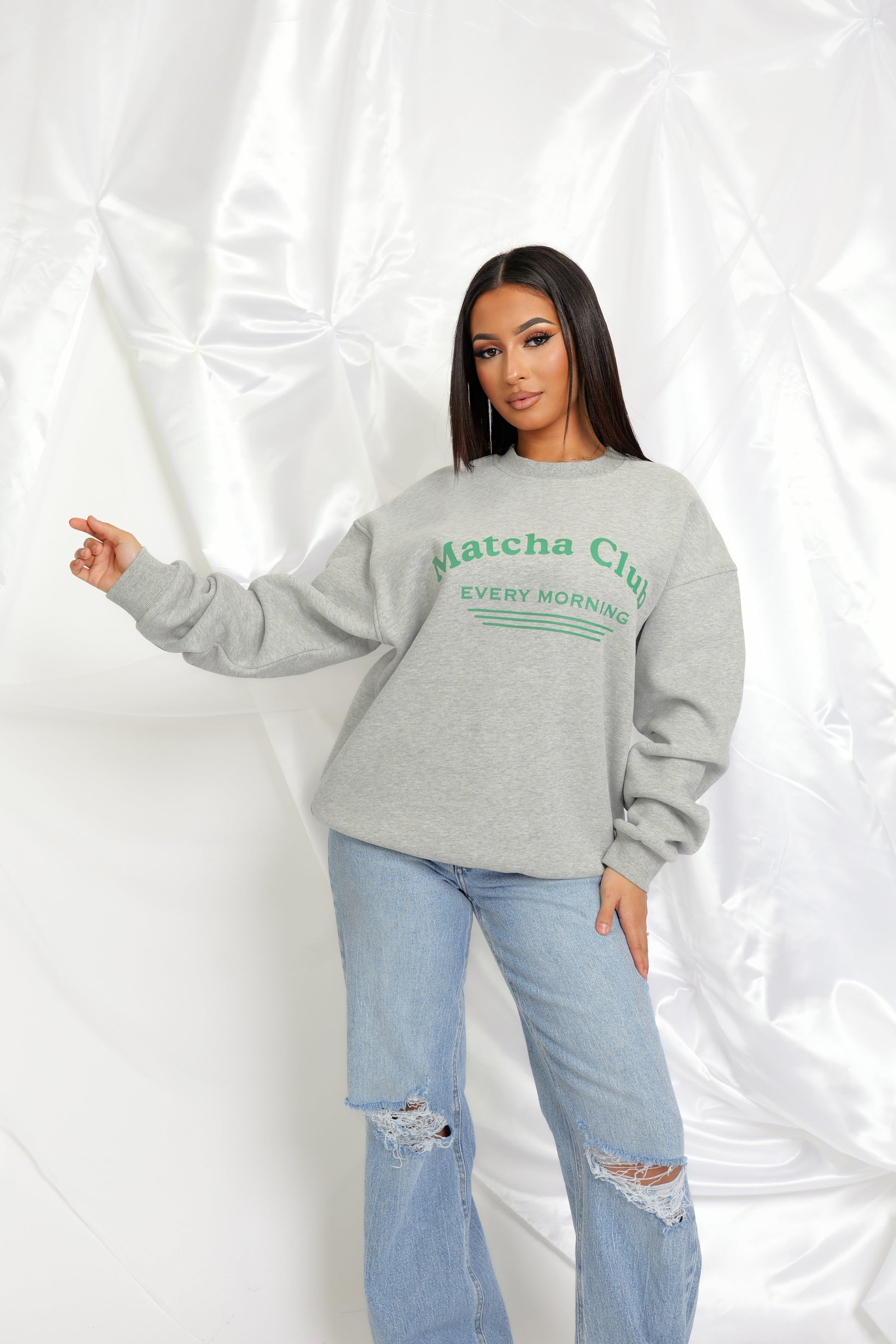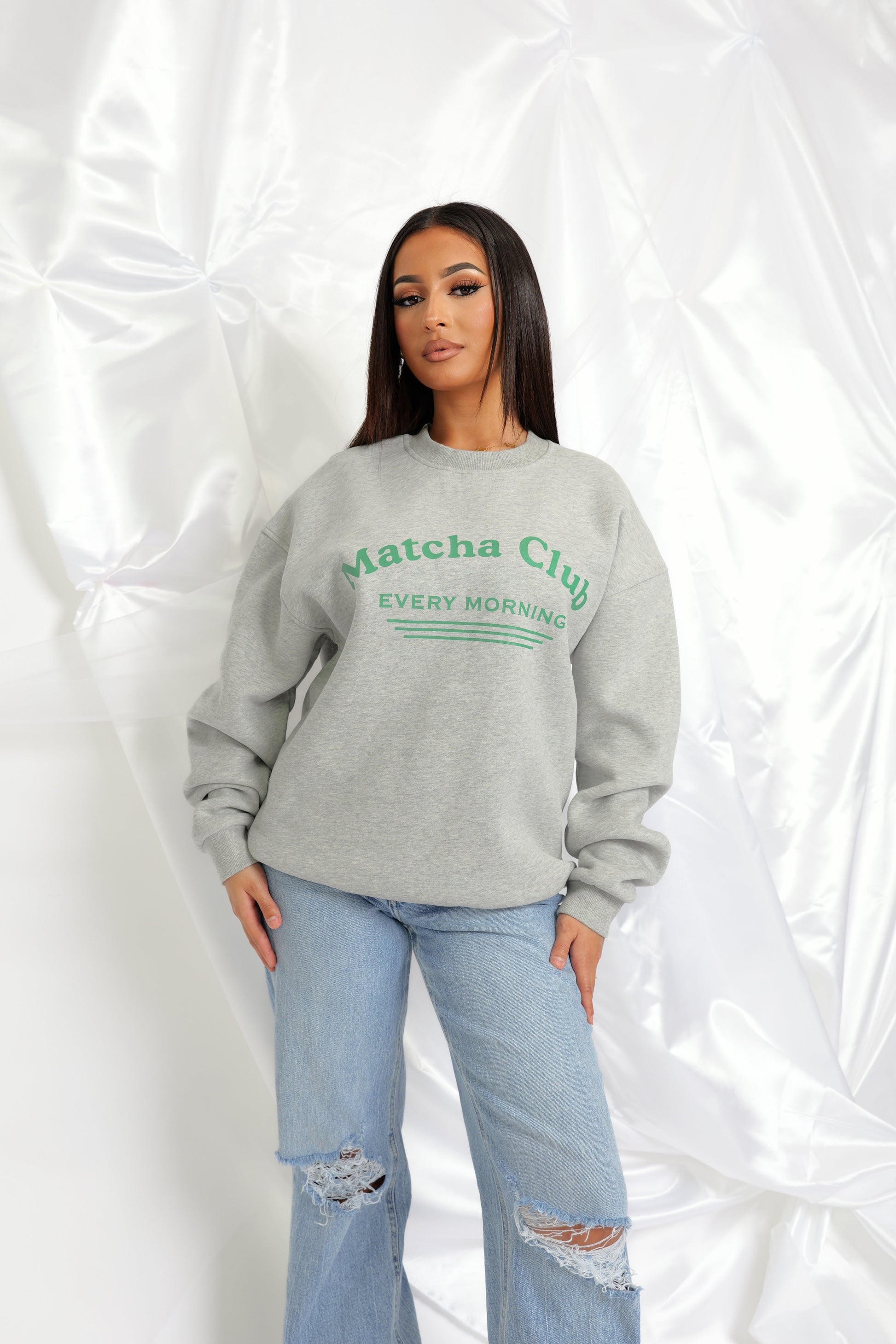Décontracté et tendance, le Pull Matcha est la pièce cosy parfaite pour un look casual chic. Avec son inscription “Matcha Club – Every Morning”, il apporte une touche lifestyle moderne et fraîche à votre tenue.