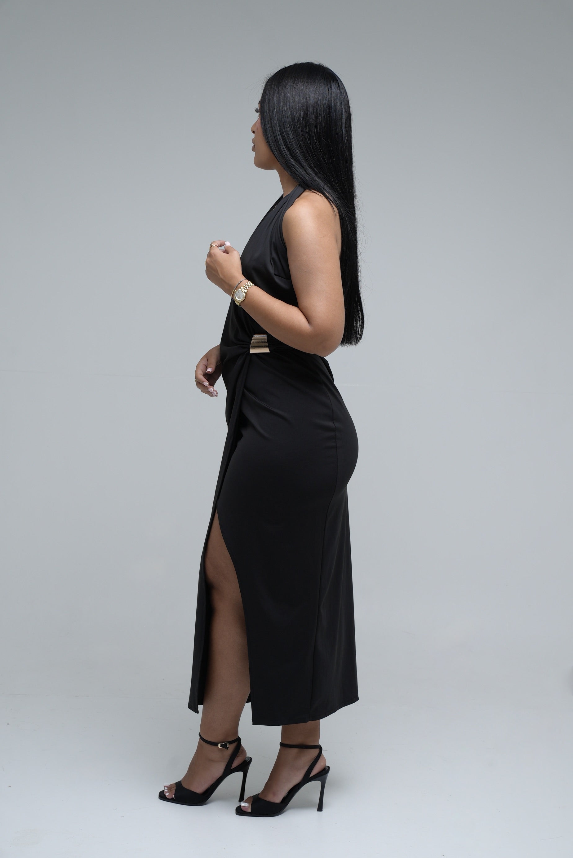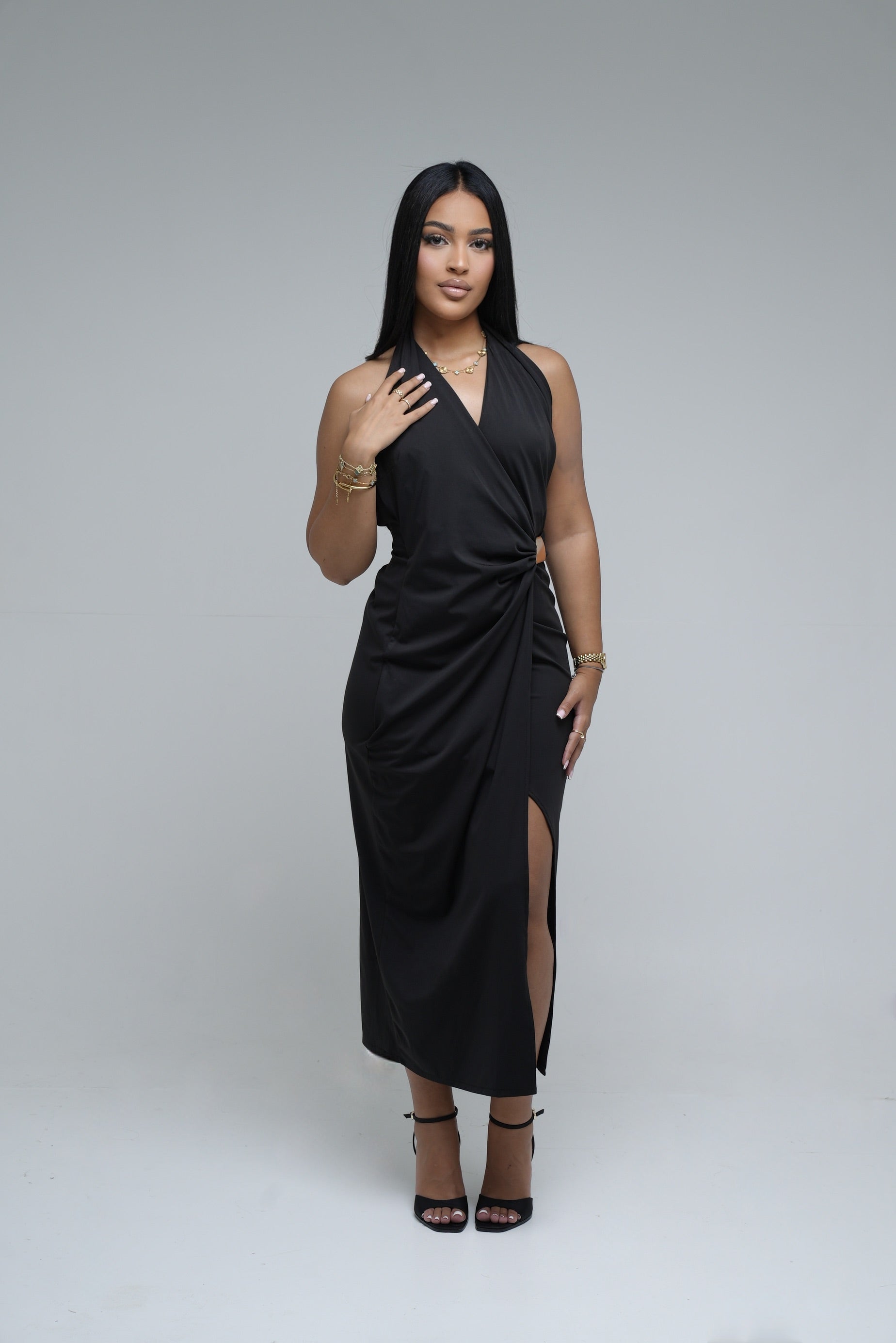 Une pièce qui incarne le raffinement et la séduction. La robe Élégance épouse les courbes avec grâce grâce à sa coupe drapée, son ouverture subtile à la taille et sa fente délicate sur la jambe. Son décolleté croisé met en valeur la silhouette avec une touche de modernité. Idéale pour une soirée ou un événement chic, elle associe allure et confort dans une matière fluide et extensible.
